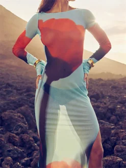 Women Cover-up Dress Flare Sleeve Turtleneck