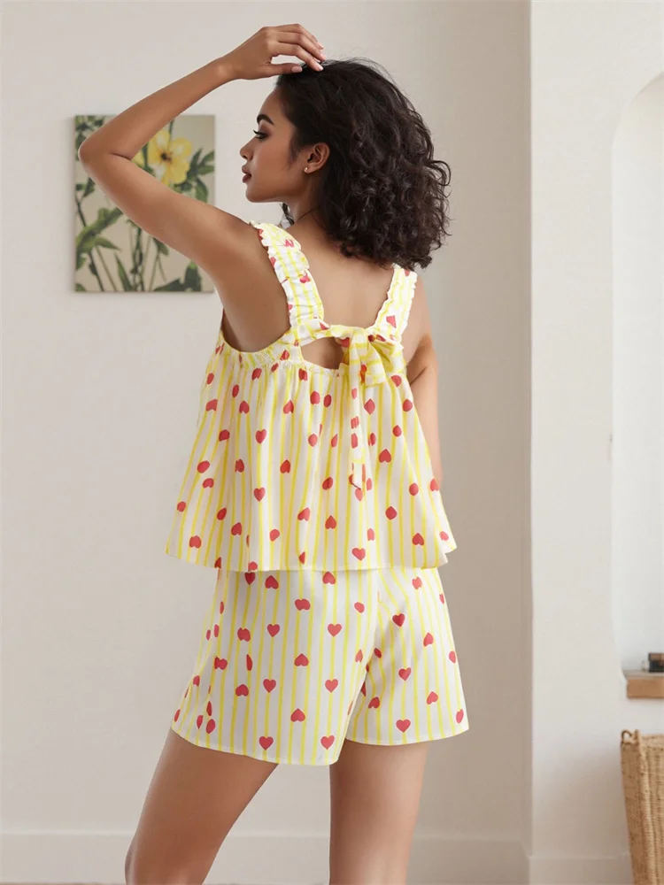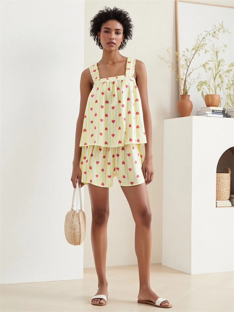 Womens Casual 2 Piece Outfits Sleeveless Sun/Heart Print Tank Tops + Shorts Set Loungewear