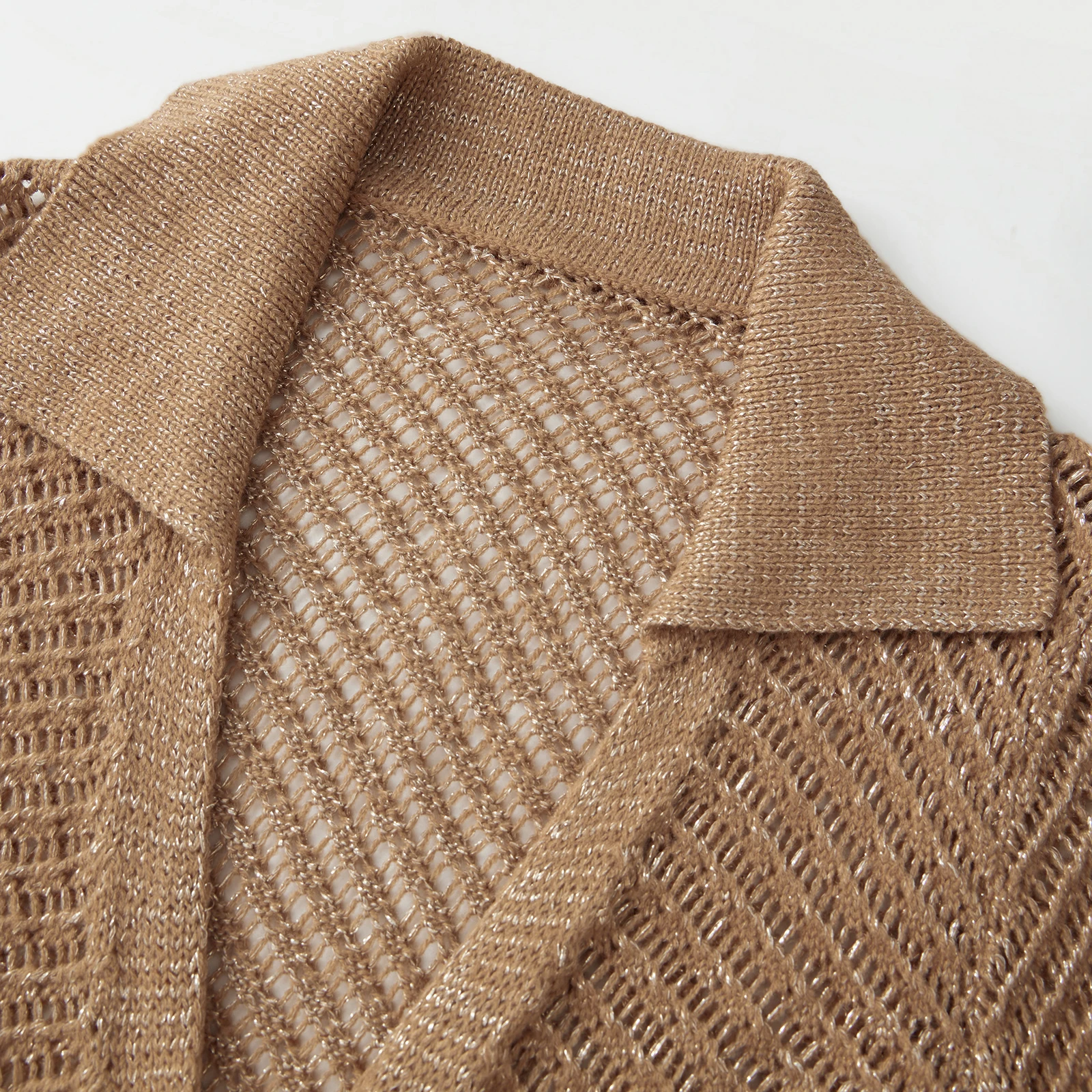 Women’s Long Knit Cardigan Stylish Hollow Details Button Down Lapel V Neck Long Sleeve Sweater Jacket for Fall/Winter